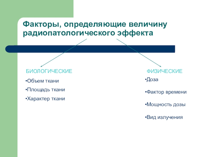 Слайд 6Факторы, определяющие величину радиопатологического эффекта