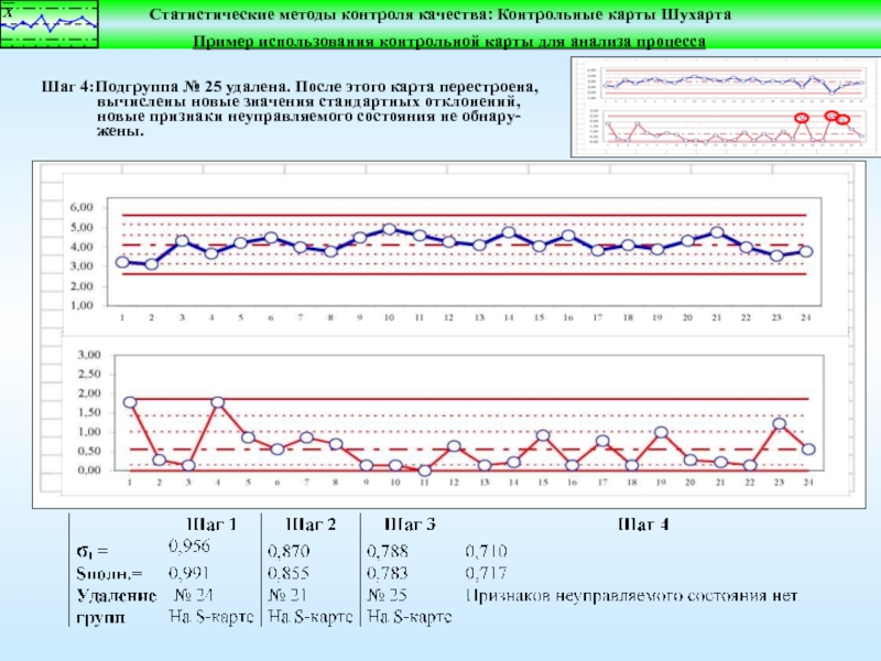 щи Контрольных Карт Шухарта. А удалив из исходного массива данные, которые были охарактеризо-