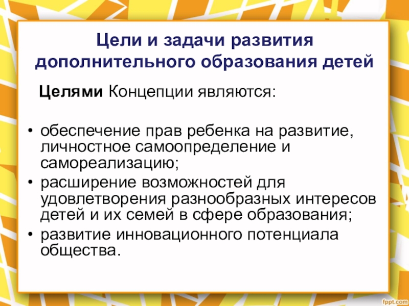Слайд 8Цели и задачи развития дополнительного образования детей