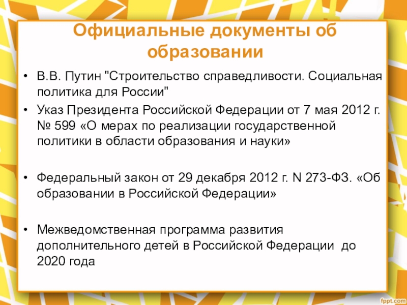 Федеральный закон от 29 декабря 2012 г. N 273-ФЗ. «Об образовании в Российской Федерации»
