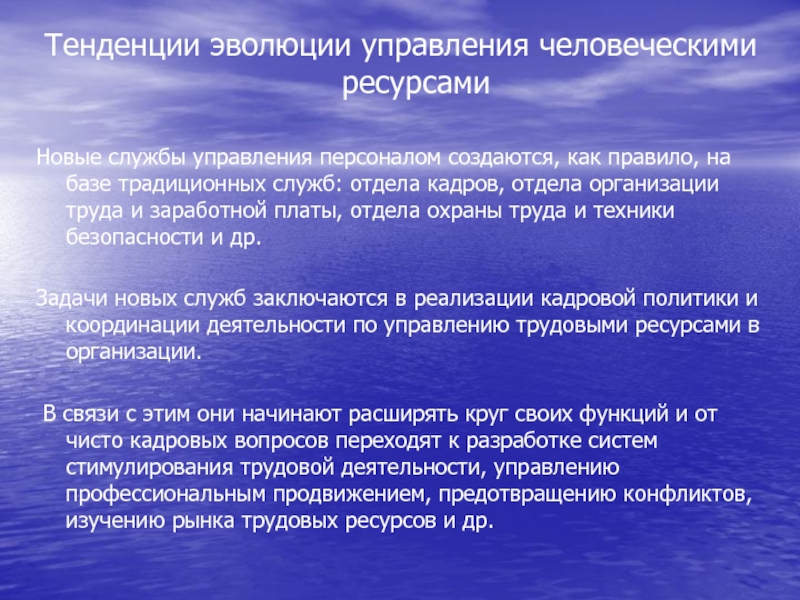 Задачи новых служб заключаются в реализации кадровой политики и координации деятельности по управлению трудовыми ресурсами в организации.