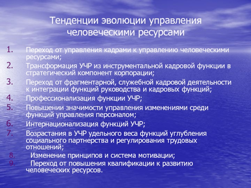 Слайд 9Тенденции эволюции управления человеческими ресурсами