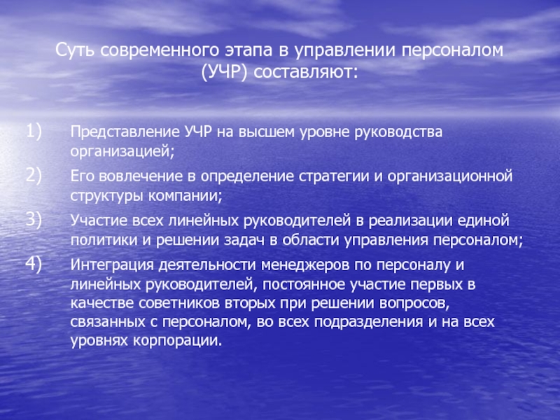 Слайд 8Суть современного этапа в управлении персоналом (УЧР) составляют: