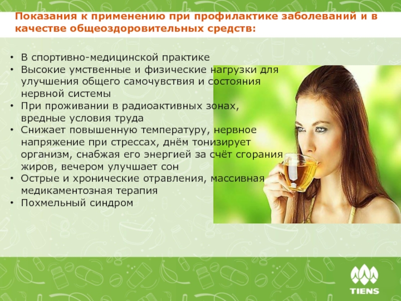 Показания к применению при профилактике заболеваний и в качестве общеоздоровительных средств: