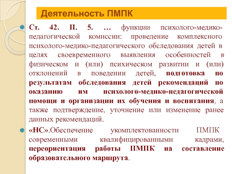 Ст. 42. П. 5. … функции психолого-медико-педагогической комиссии: