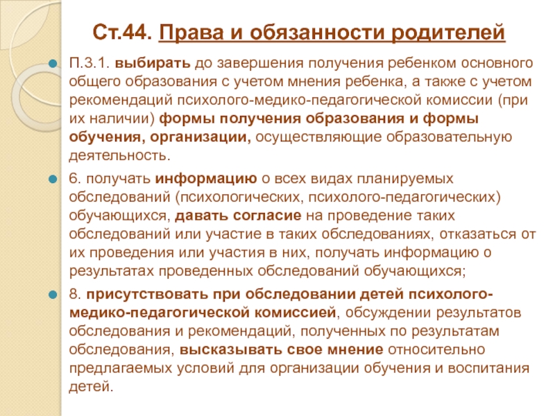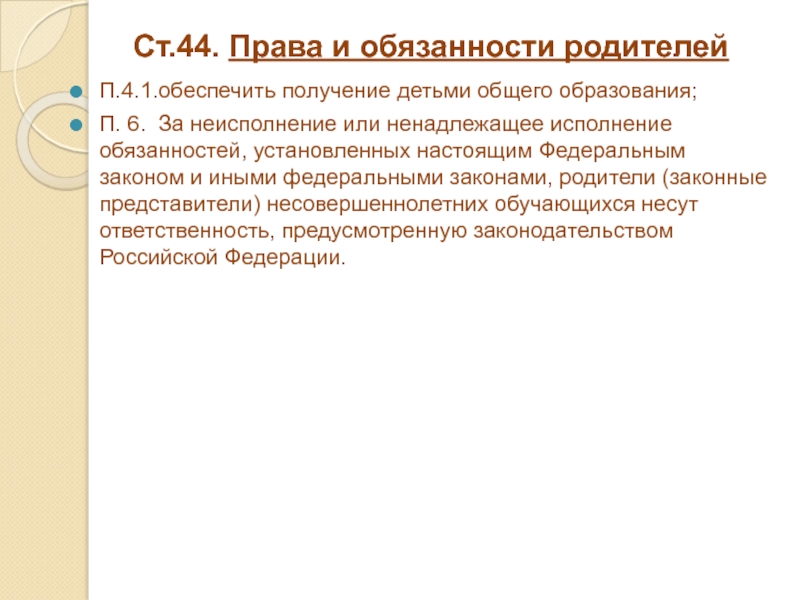 Слайд 5Ст.44. Права и обязанности родителей