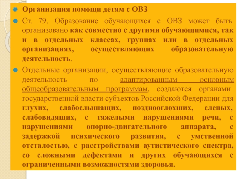 Ст. 79. Образование обучающихся с ОВЗ