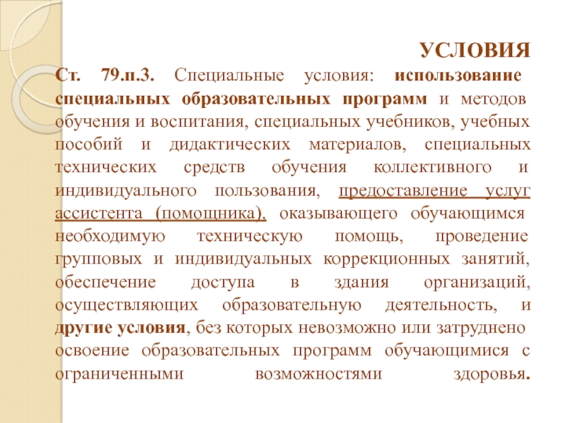 Ст. 79.п.3. Специальные условия: использование специальных образовательных программ и