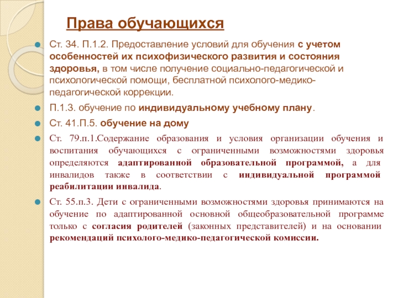 Ст. 34. П.1.2. Предоставление условий для обучения с учетом