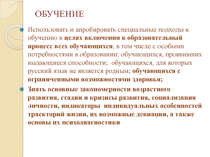 Использовать и апробировать специальные подходы к обучению в целях включения