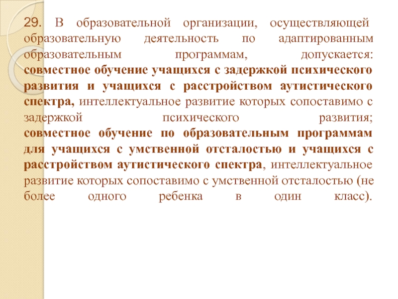 Слайд 1429. В образовательной организации, осуществляющей образовательную деятельность по адаптированным образовательным