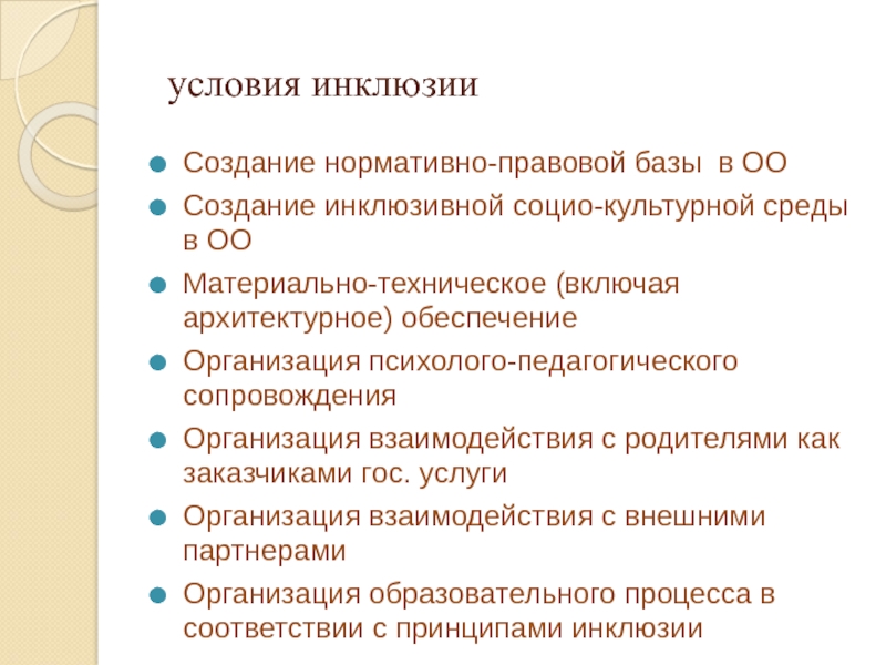 Слайд 24 условия инклюзии