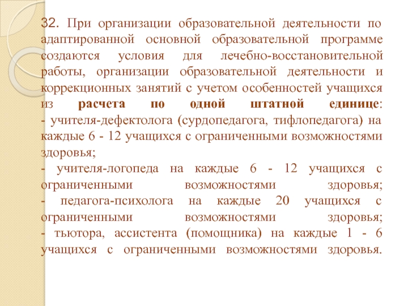Слайд 1632. При организации образовательной деятельности по адаптированной основной образовательной программе