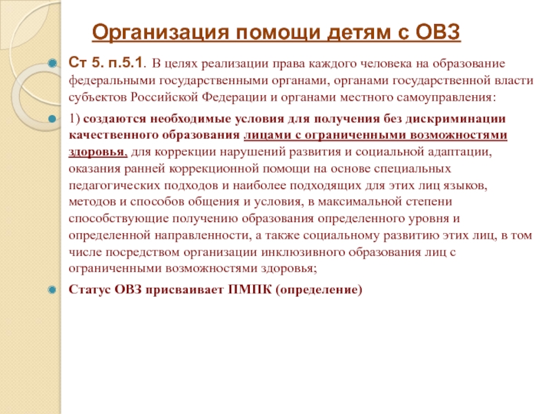 Слайд 9Организация помощи детям с ОВЗ