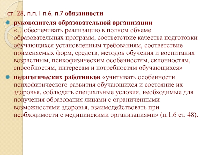 Слайд 6ст. 28, п.п.1 п.6, п.7 обязанности