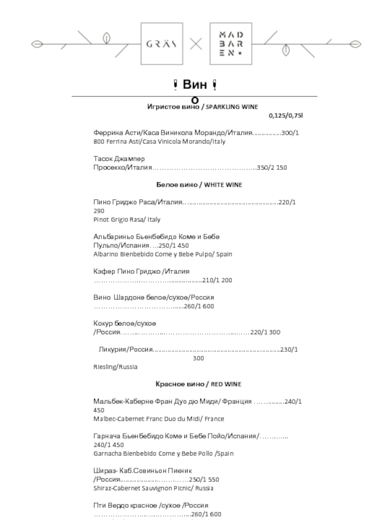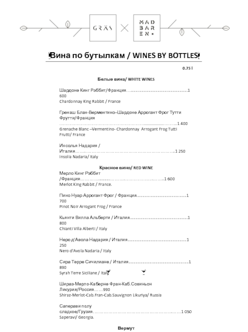 3* 0.5л/40мл/ Грузия/ ………….……………………....190/2 500Асканели 5* 0.5л/40мл/ Грузия/ …………..………….……..……220/2 650