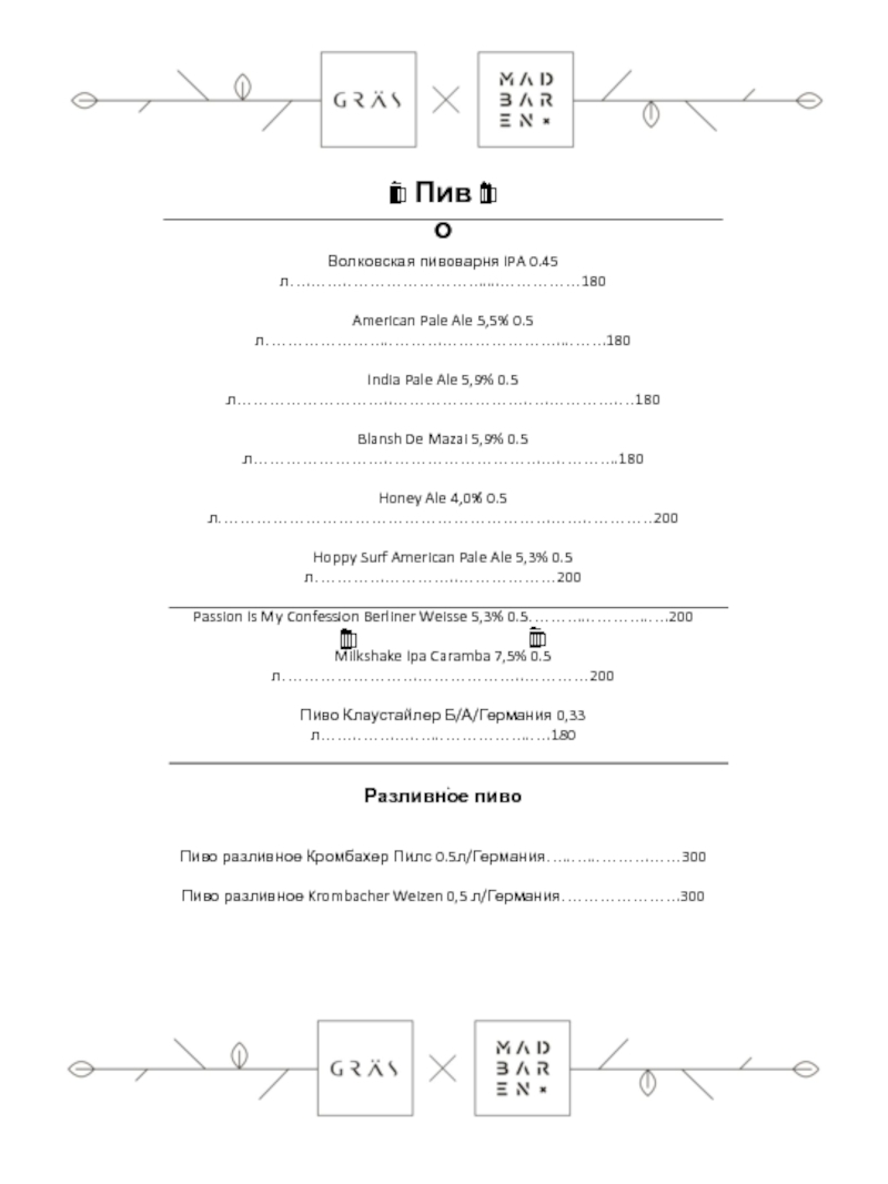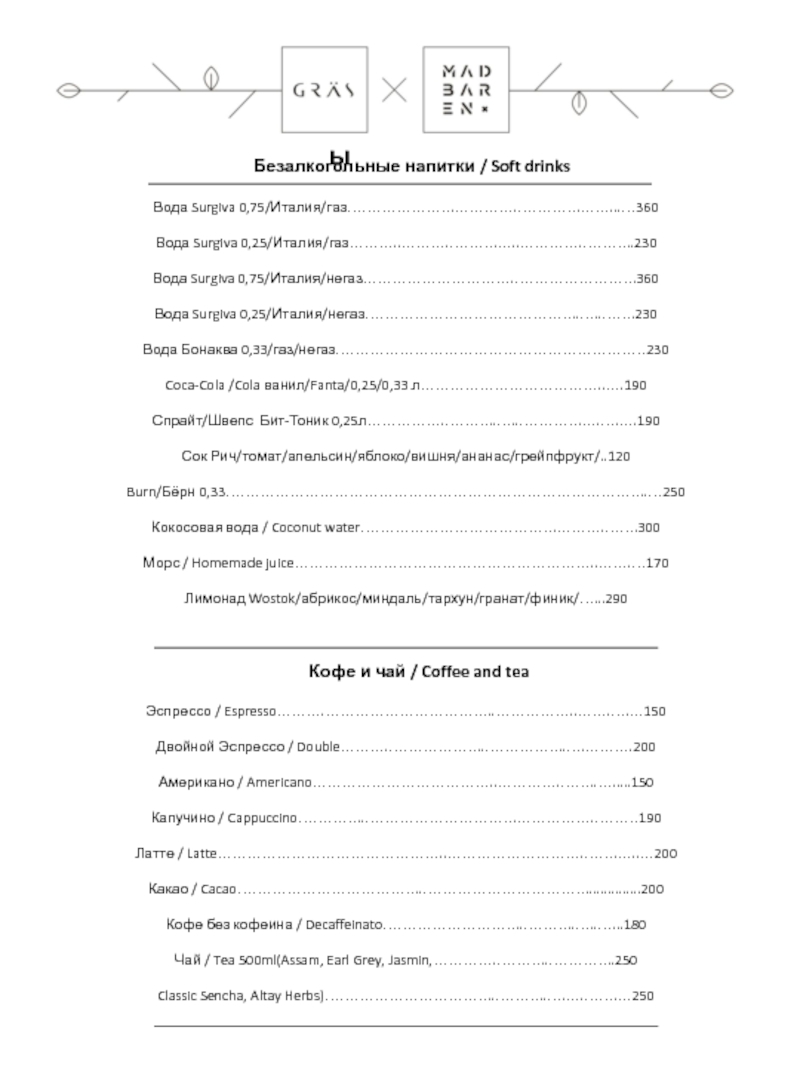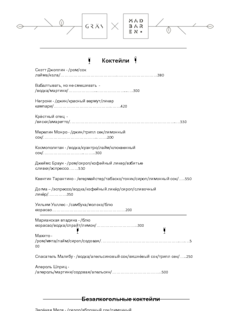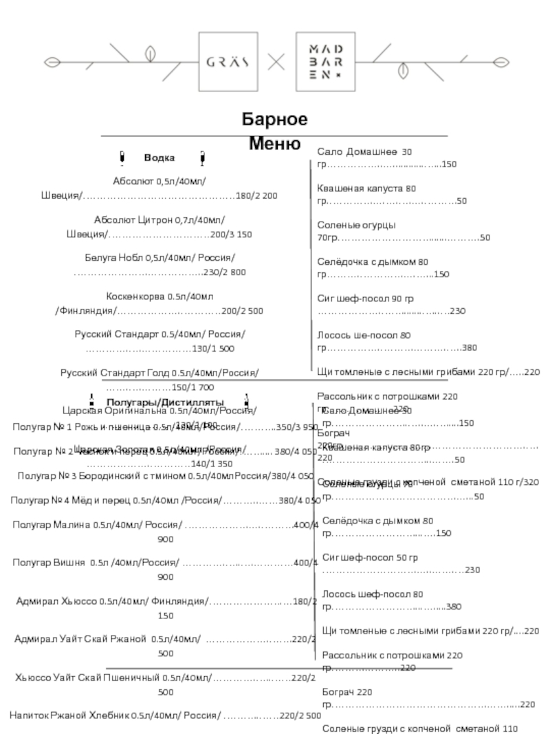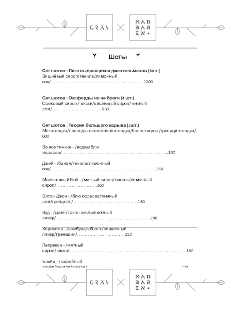 Барное Меню