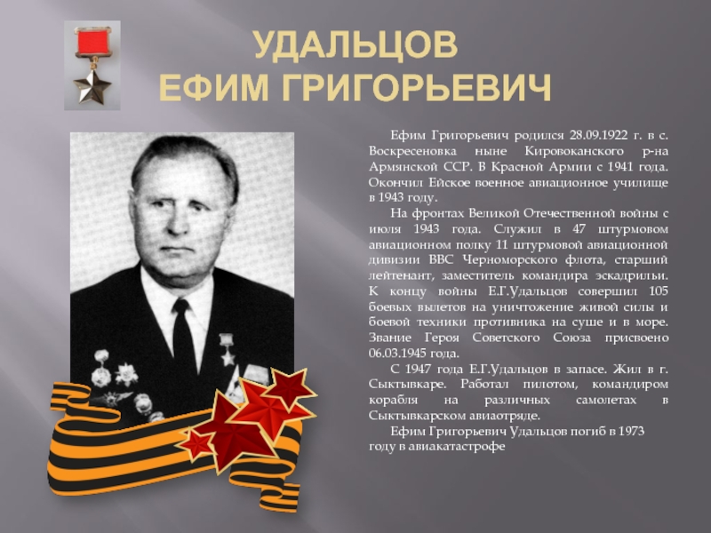 Ефим Григорьевич Удальцов погиб в 1973 году в авиакатастрофе