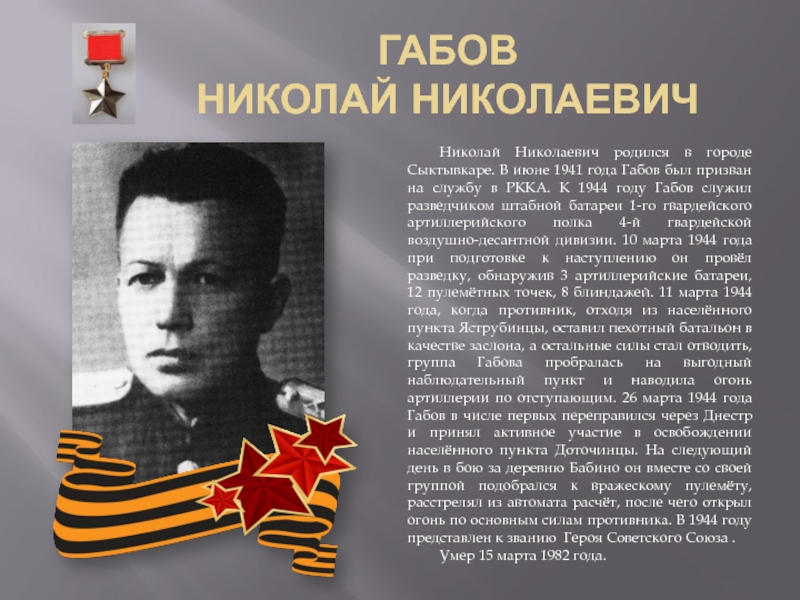 5 ноября 1944 - присвоено звание Героя Советского Союза.