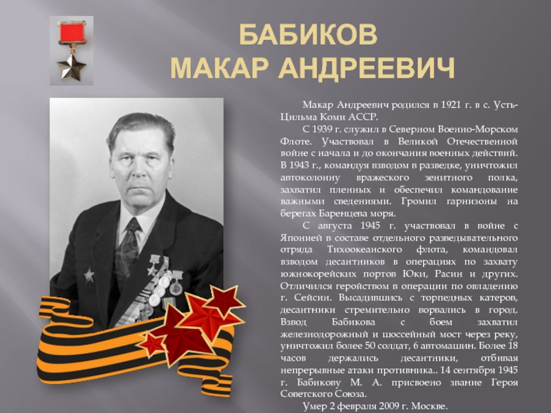 Макар Андреевич родился в 1921 г. в с. Усть-Цильма