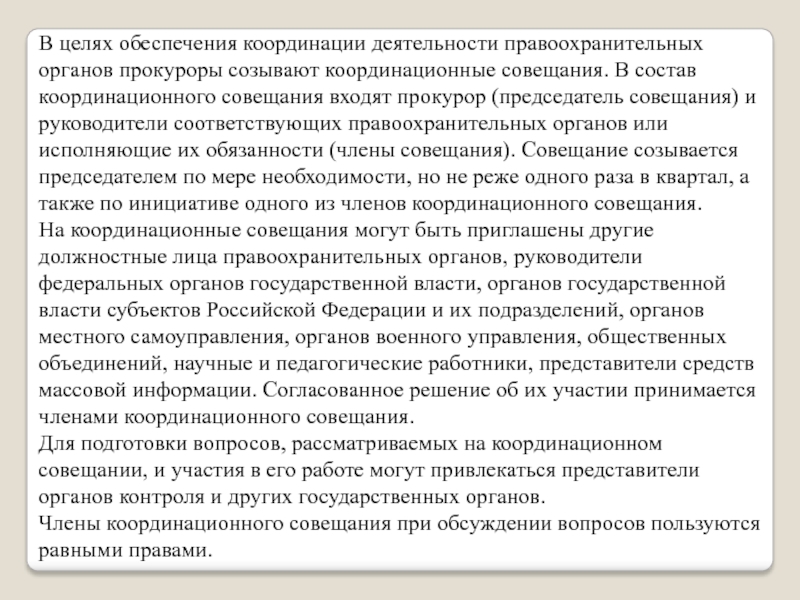 Слайд 7Координация деятельности правоохранительных органов по борьбе с преступностью осуществляется на