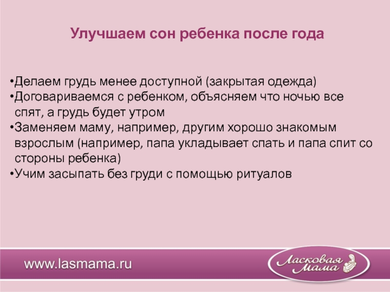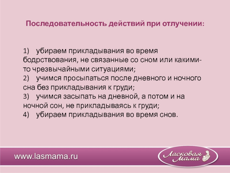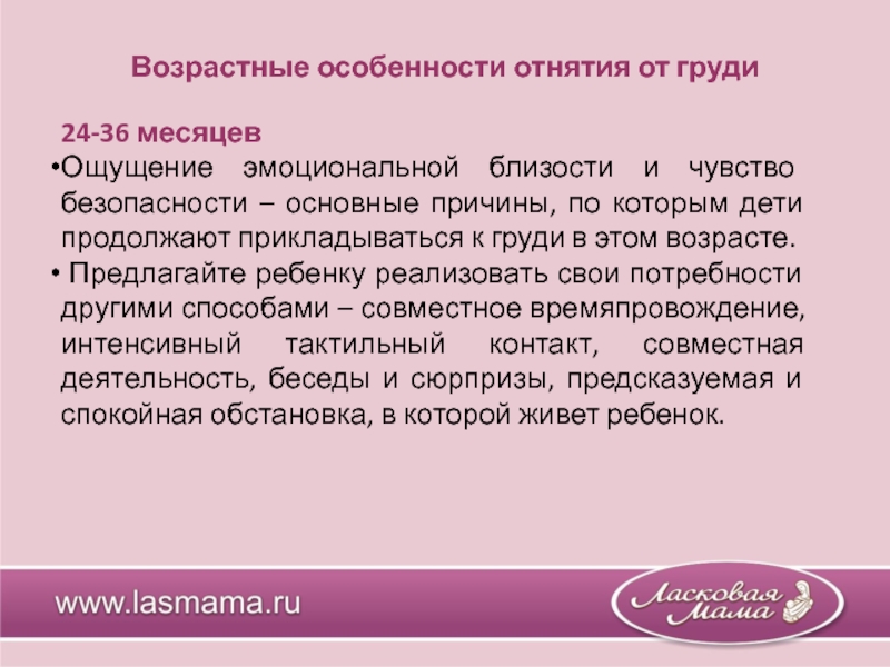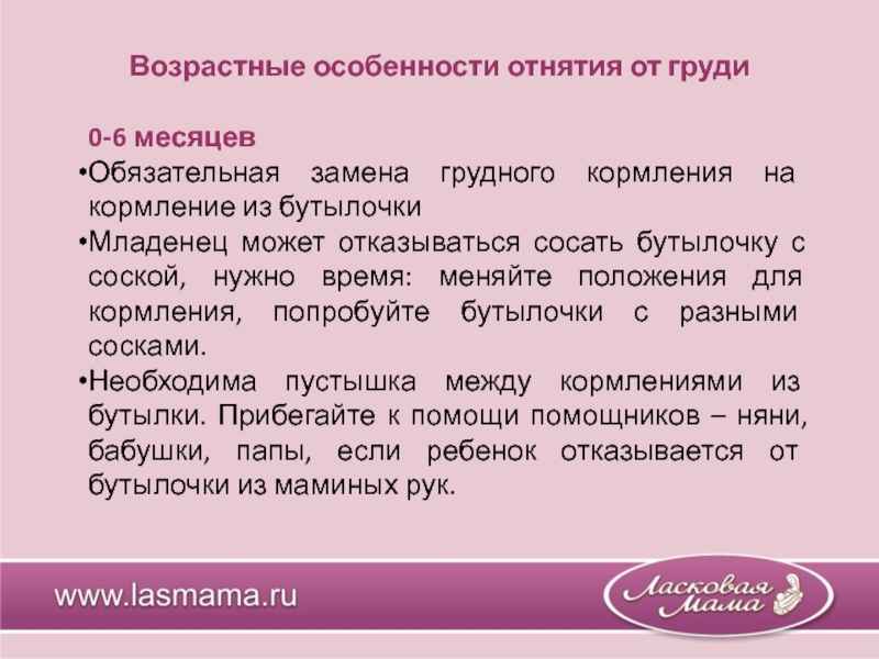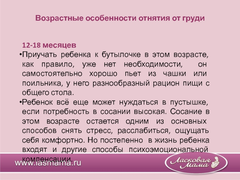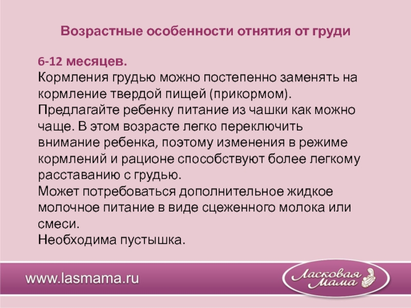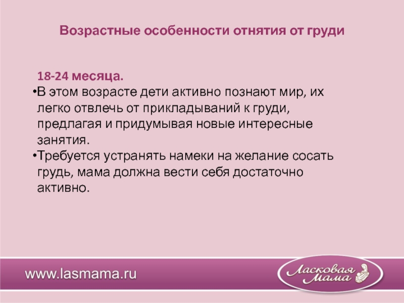 Требуется устранять намеки на желание сосать грудь, мама должна вести себя достаточно активно.
