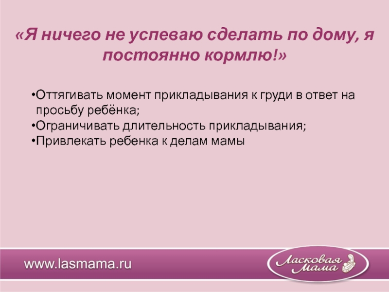Слайд 14«Я ничего не успеваю сделать по дому, я постоянно кормлю!»