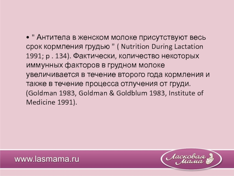 • " Антитела в женском молоке присутствуют весь срок кормления