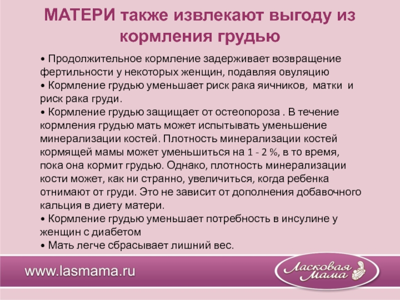 Слайд 12МАТЕРИ также извлекают выгоду из кормления грудью