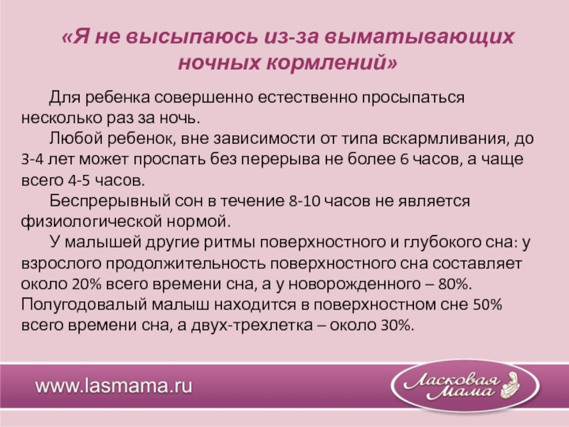 Слайд 17«Я не высыпаюсь из-за выматывающих ночных кормлений»