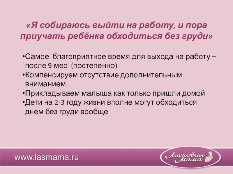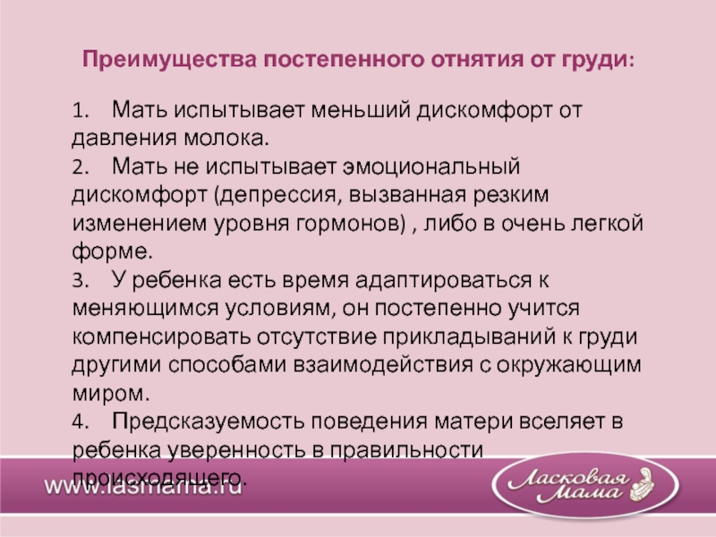 3. У ребенка есть время адаптироваться к меняющимся условиям, он постепенно учится компенсировать отсутствие прикладываний к груди другими способами взаимодействия с окружающим миром.