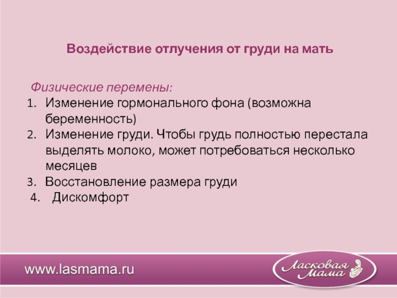 Изменение груди. Чтобы грудь полностью перестала выделять молоко, может