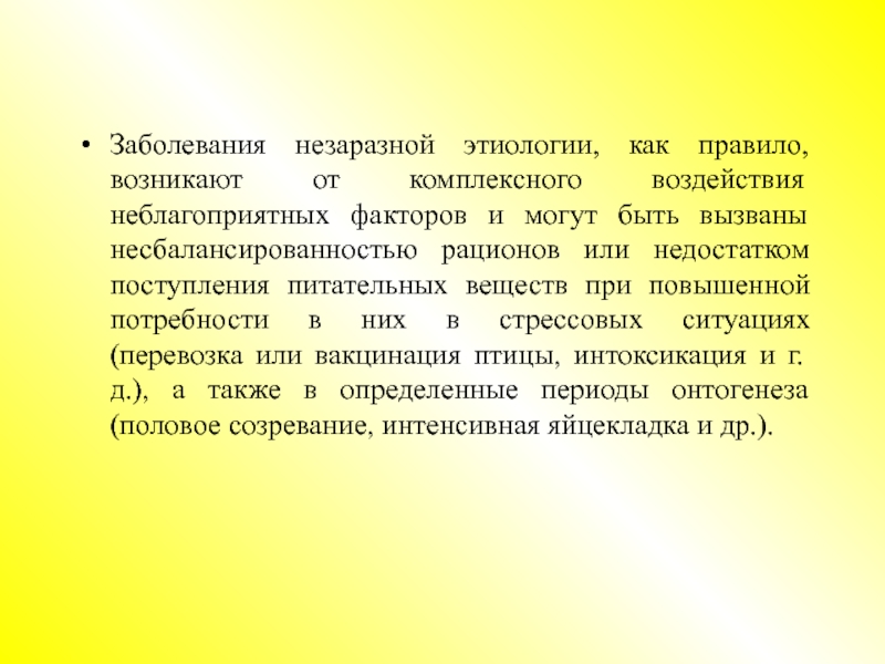 Слайд 2Заболевания незаразной этиологии, как правило, возникают от комплексного воздействия