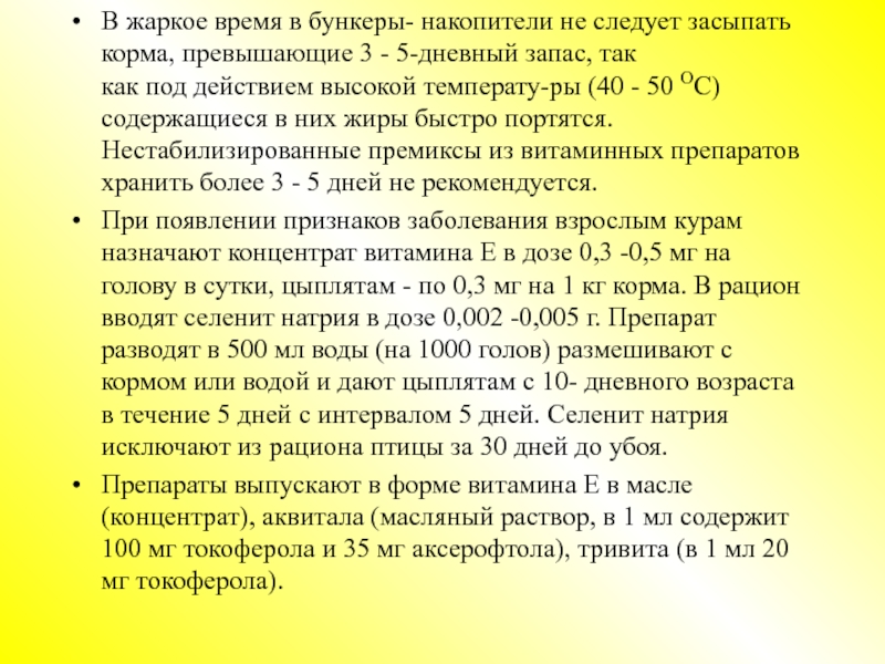 Слайд 45В жаркое время в бункеры- накопители не следует засыпать корма,