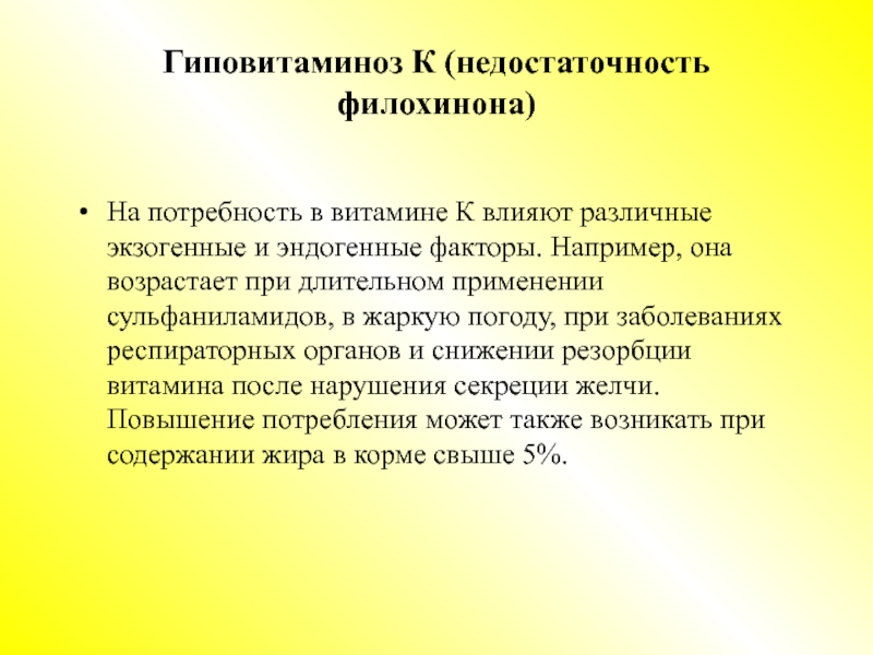 Слайд 46Гиповитаминоз К (недостаточность филохинона)