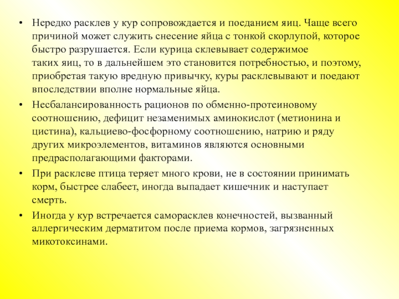 факторов и могут быть вызваны несбалансированностью рационов или недостатком