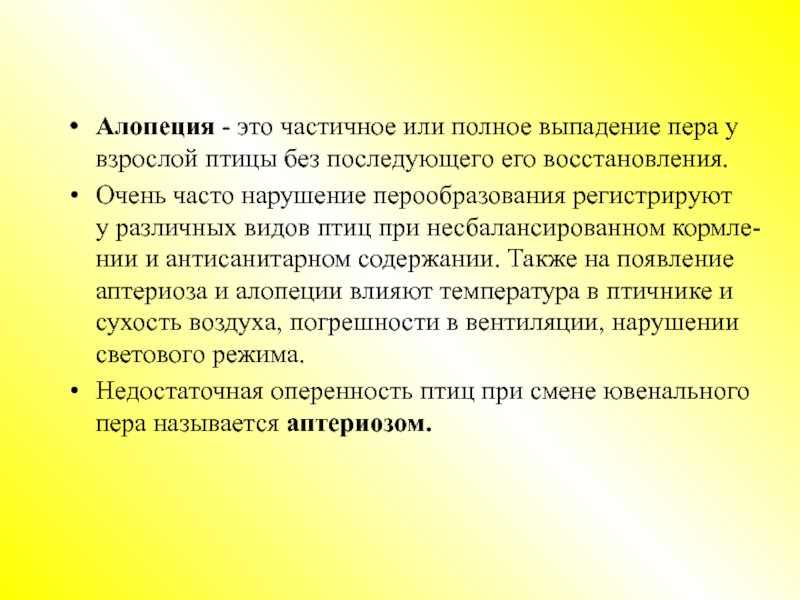 Слайд 8Алопеция - это частичное или полное выпадение пера у взрослой