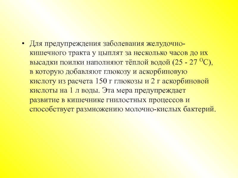 Слайд 33Для предупреждения заболевания желудочно-кишечного тракта у цыплят за несколько часов