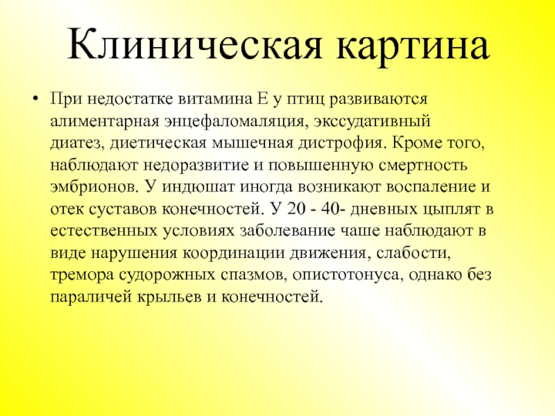 Нервные симптомы у цыпленка при недостатке витамина Е
