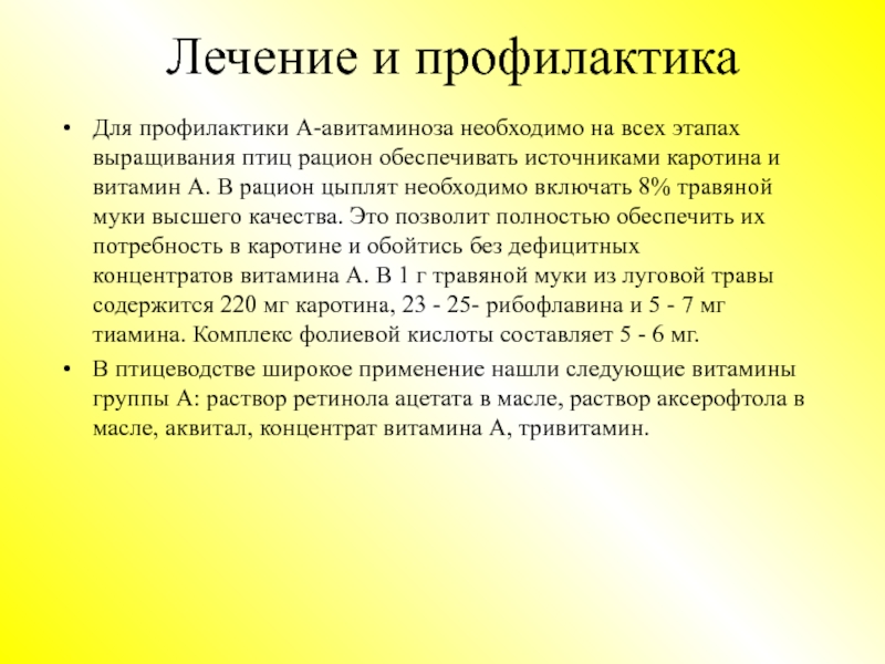 Для профилактики А-авитаминоза необходимо на всех этапах