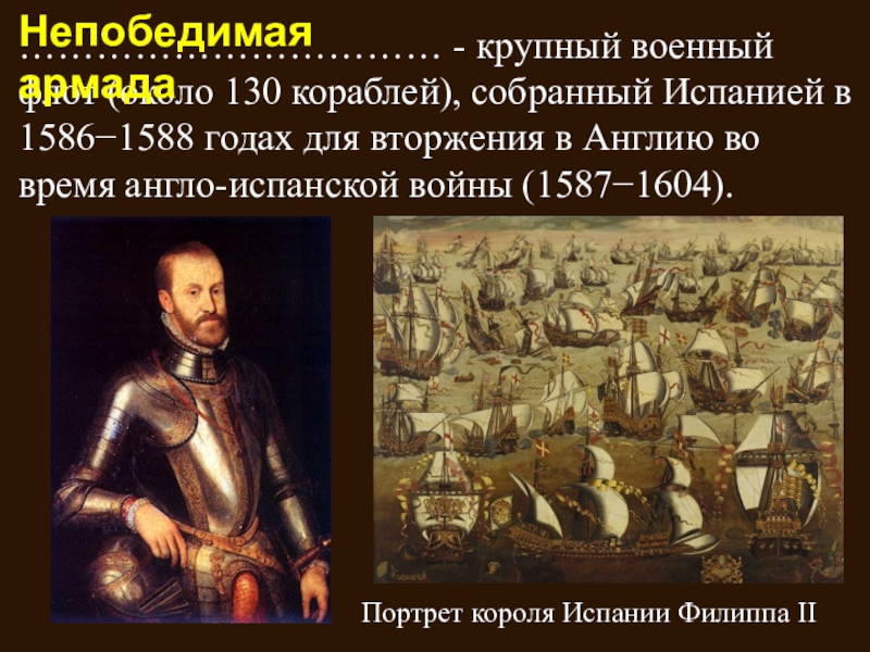 Слайд 35…………………………… - крупный военный флот (около 130 кораблей), собранный Испанией