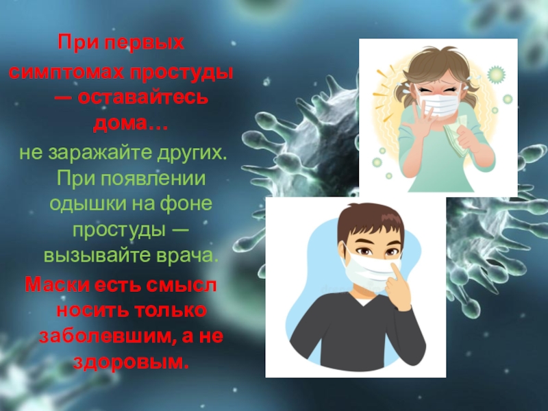 При первых симптомах простуды — оставайтесь дома… не заражайте других. При появлении одышки на фоне простуды —