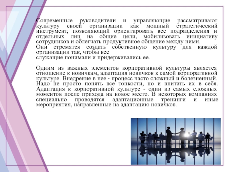 Слайд 4Современные руководители и управляющие рассматривают культуру своей организации как мощный