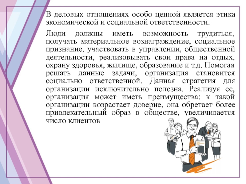 Слайд 15В деловых отношениях особо ценной является этика экономической и социальной