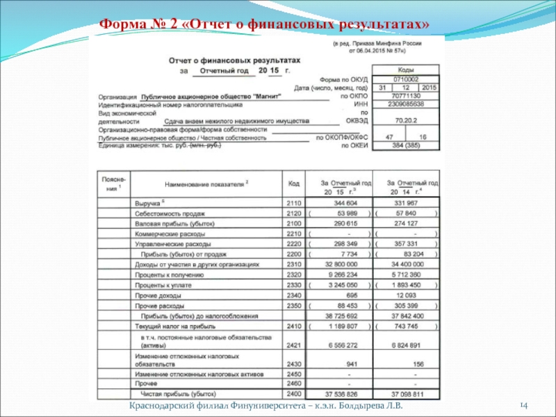 Слайд 14Краснодарский филиал Финуниверситета – к.э.н. Болдырева Л.В.