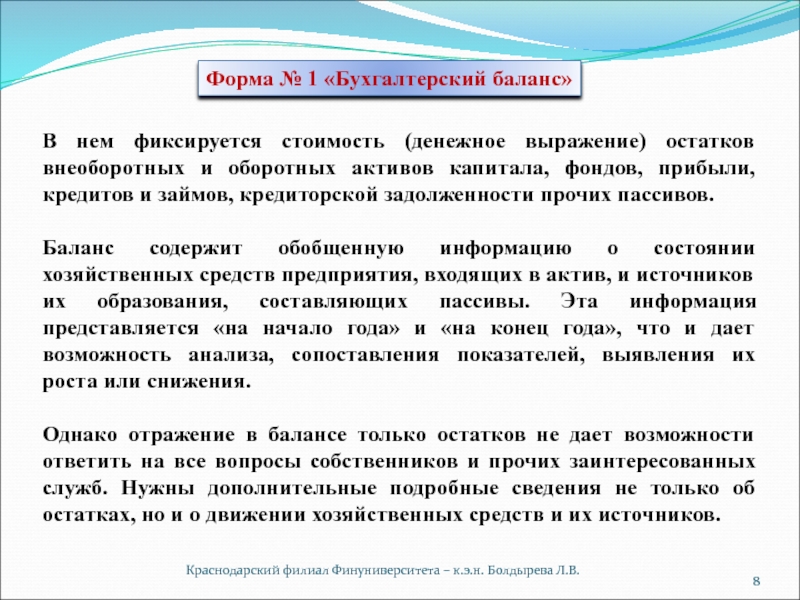 Слайд 8Краснодарский филиал Финуниверситета – к.э.н. Болдырева Л.В.