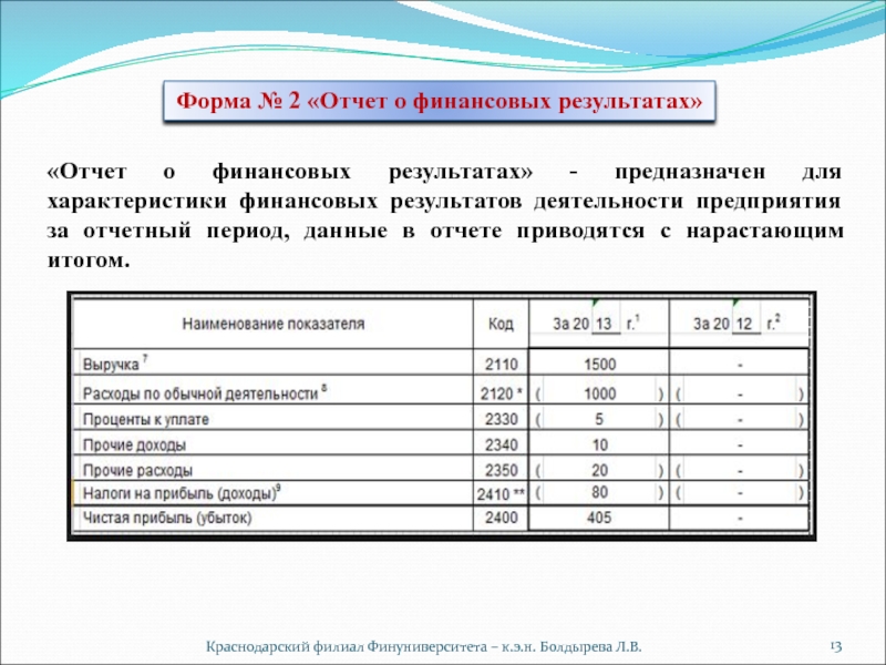 Слайд 13Краснодарский филиал Финуниверситета – к.э.н. Болдырева Л.В.