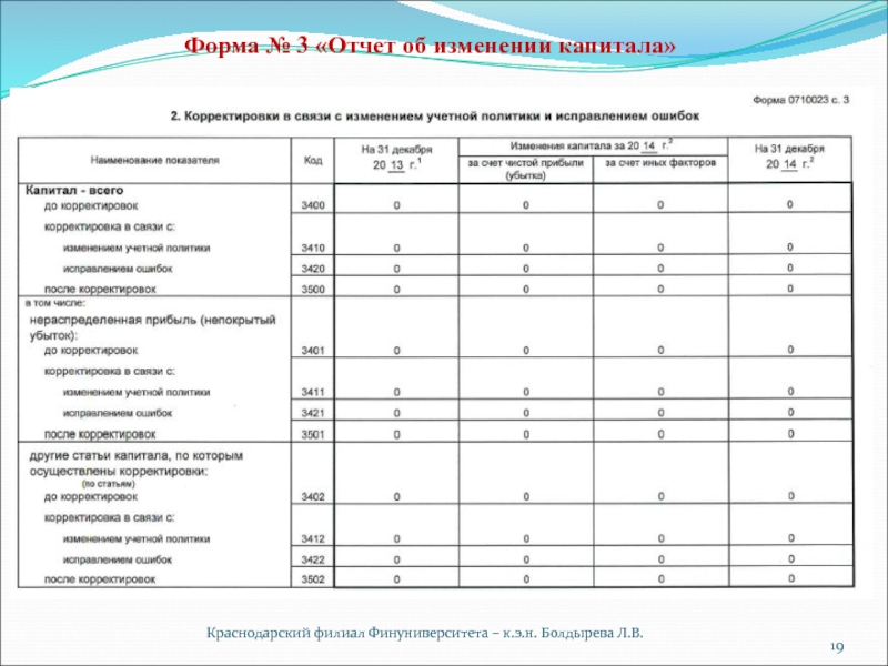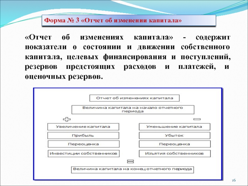 Слайд 16Форма № 3 «Отчет об изменении капитала»