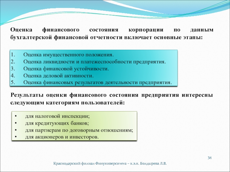 Слайд 34Краснодарский филиал Финуниверситета – к.э.н. Болдырева Л.В.