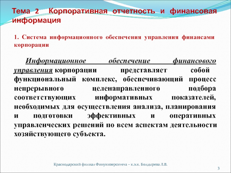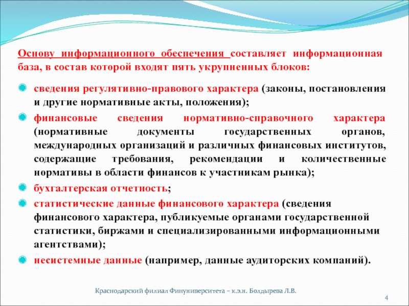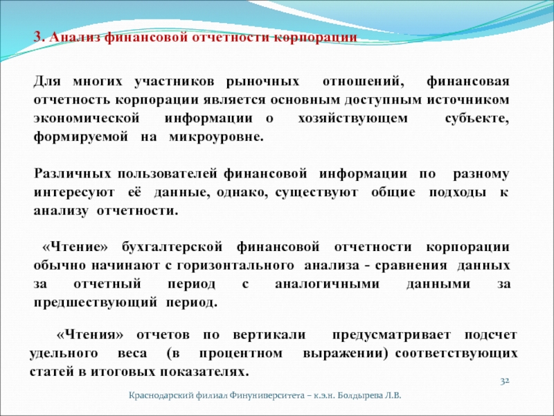 Слайд 3Краснодарский филиал Финуниверситета – к.э.н. Болдырева Л.В.